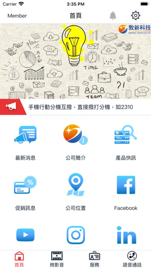 通訊錄整合,提供同仁使用智能電話撥打公司分機及行動分機並提供語音會議功能