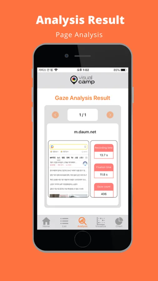 Run eye tracking tests to know where you are looking and your concentration when surfing websites using VisualCamp's eye tracking and gaze analysis technology.