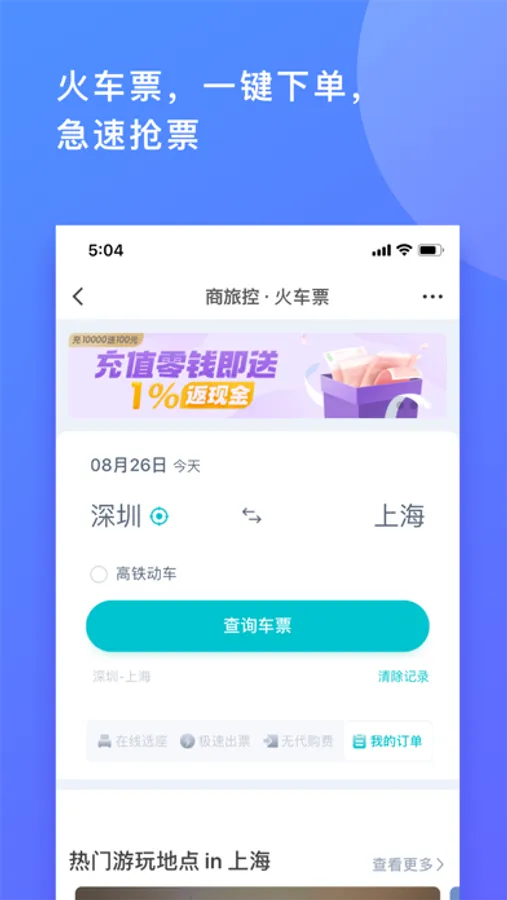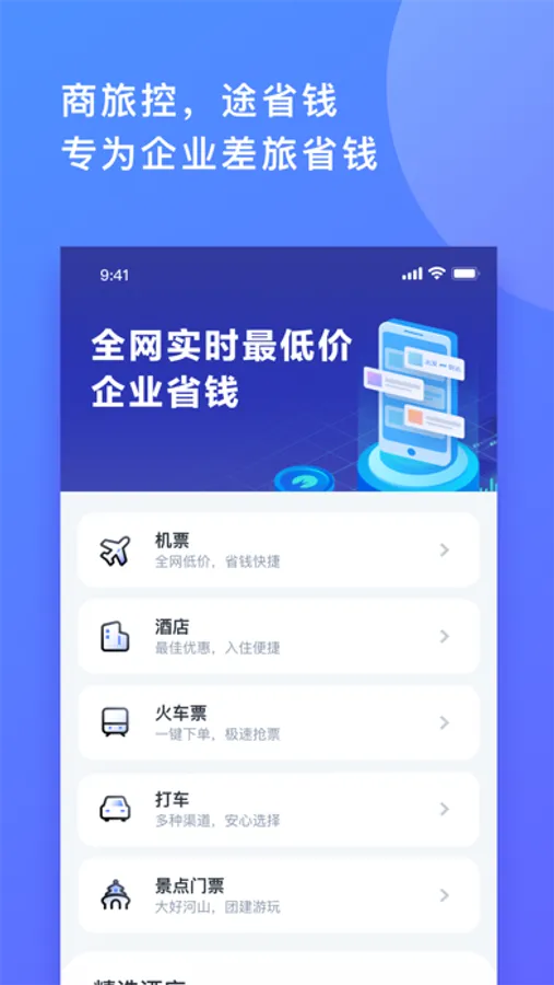 商旅控,途省钱,通过领先的全球在线服务实时比价预订系统,聚合全网在线服务实时价格,运用大数据及人工智能技术,结合个性化精准推荐,为企业用户提供一站式企业差旅解决方案。