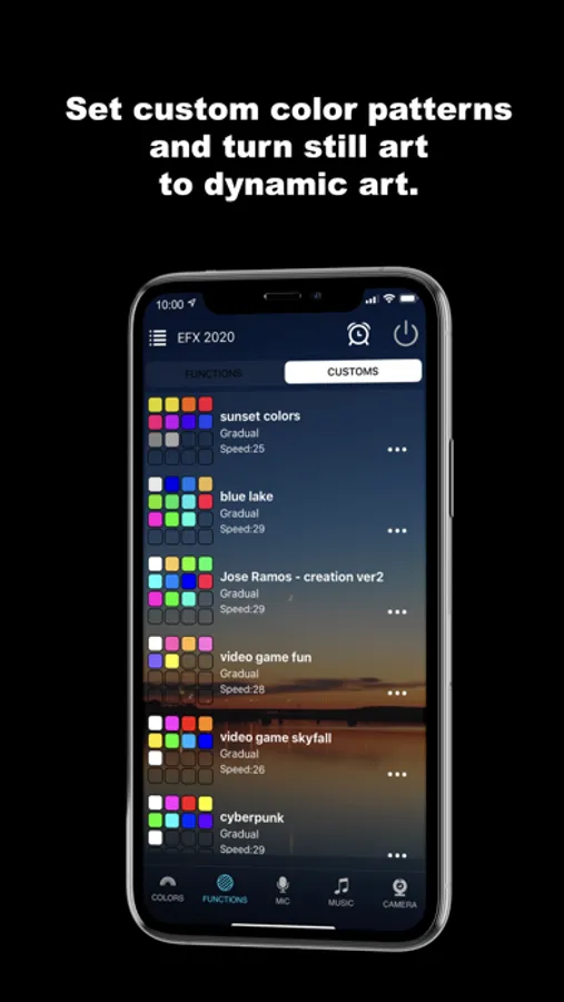 Our prints can automatically change in color. Can yours? The EFX™ App allows you to control color on EFX™ Gallery giclées or EFX™ Imagery printed advertisements. No longer does printed imagery have a single static look to it. With multiple US Patents in place, use our app to turn a particular object(s) on your printed imagery to different colors.