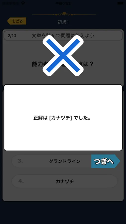 4択問題で回答を押すだけで楽しめるクイズアプリです。