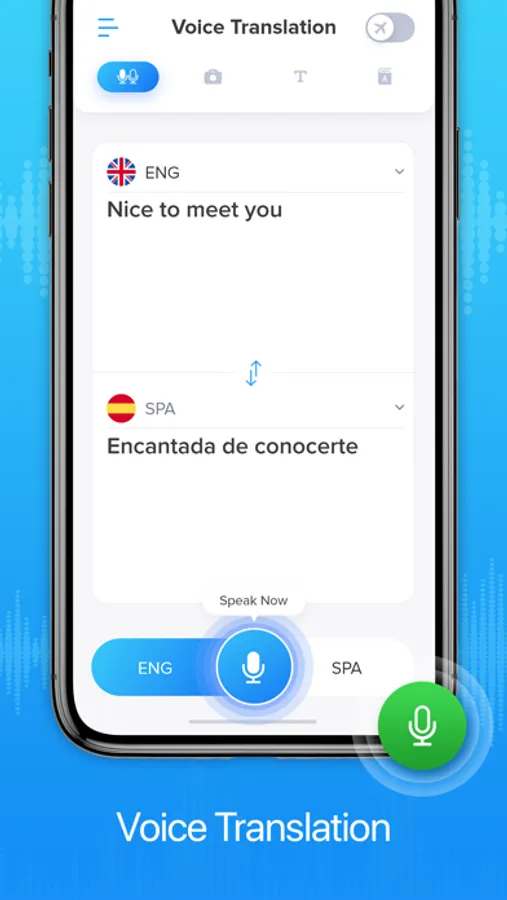 * Translate with Voice. Let the app help you to find out what you said or and shows you the results on screen.