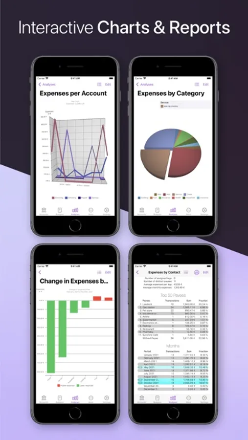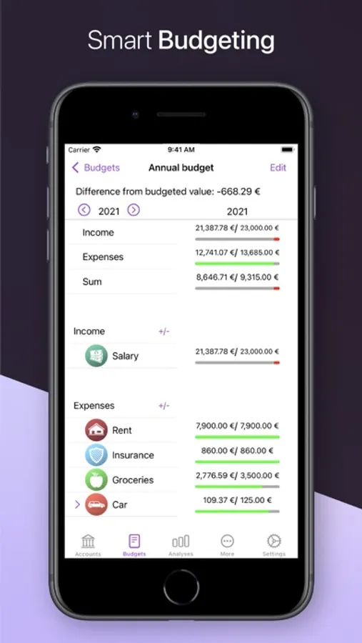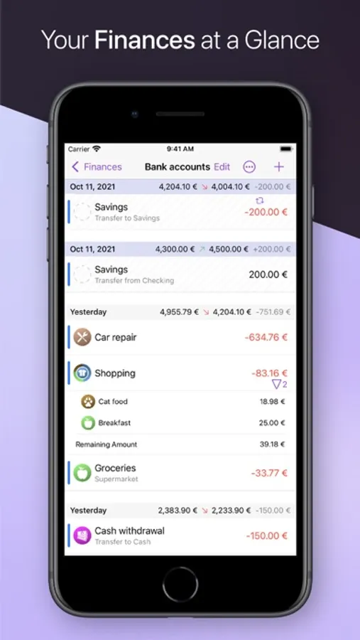 Want to find out how your assets are performing? Or why you keep maxing out your bank account each month, leaving you to wonder where your salary actually goes? Is it current expenses such as rent, insurance, food or loans? iFinance has all the answers. It can analyze your finances and helps you identify your biggest spending items and any categories with saving potential.