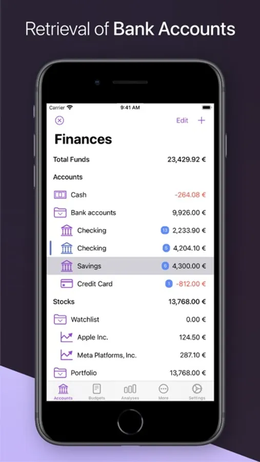 iFinance helps you keep track of your income and spending in the most convenient and fastest way. iFinance's convenient evaluations and charts provide an at-a-glance overview of your income streams and expenditures so that optimizing your finances becomes a breeze. The app's automatic category assignment, tags, budgets, and analytics tools help turn your account history into much more than just a list of bare numbers.