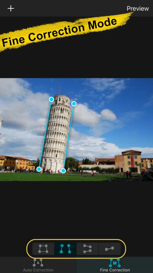 Photo Perspective Pro has two operating modes: Auto Correction mode and Fine Correction mode. In Fine Correction mode, four advanced tools are also provided for you to further choose to adjust for the best effect !