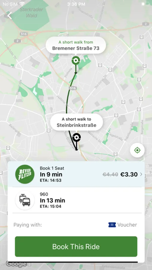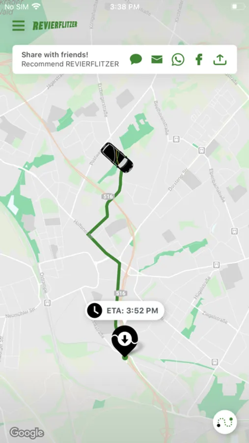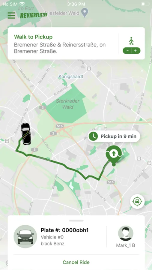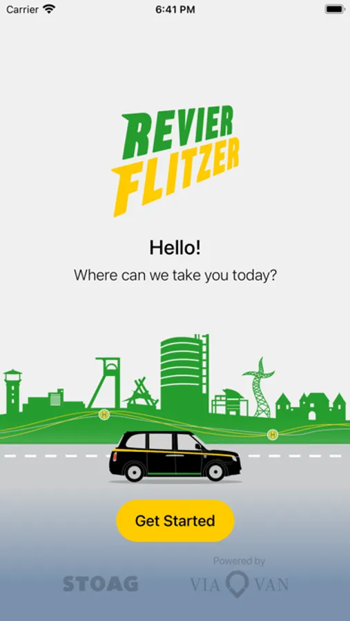 Be picked up from a REVIERFLITZER and transported to your destination (you can see your REVIERFLITZER and route in the app)