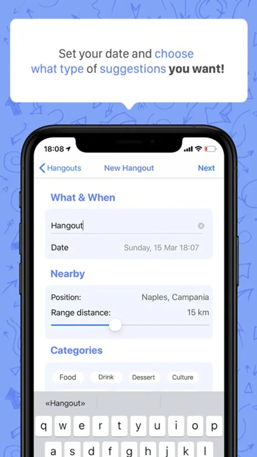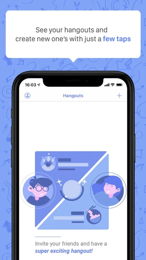 Open the app, create a new hangout, add a title to customize it and choose the date of the hangout.