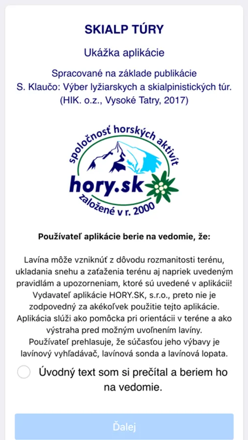 Užívateľom aplikácie prajeme veľa krásnych zážitkov na skialpinistických túrach.