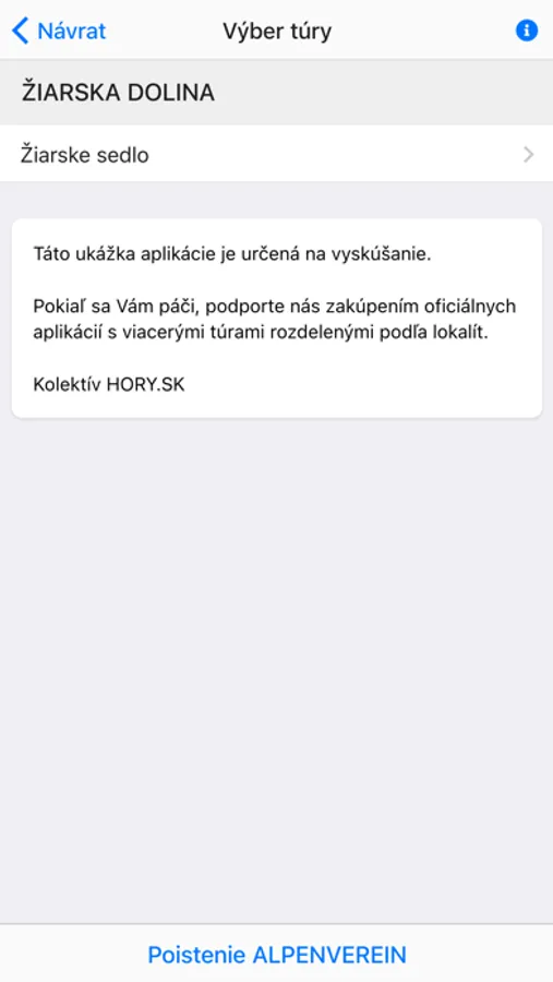 Ukážka aplikácie. Podporte nás zakúpením oficiálnych aplikácií s viacerými túrami rozdelenými podľa lokalít.