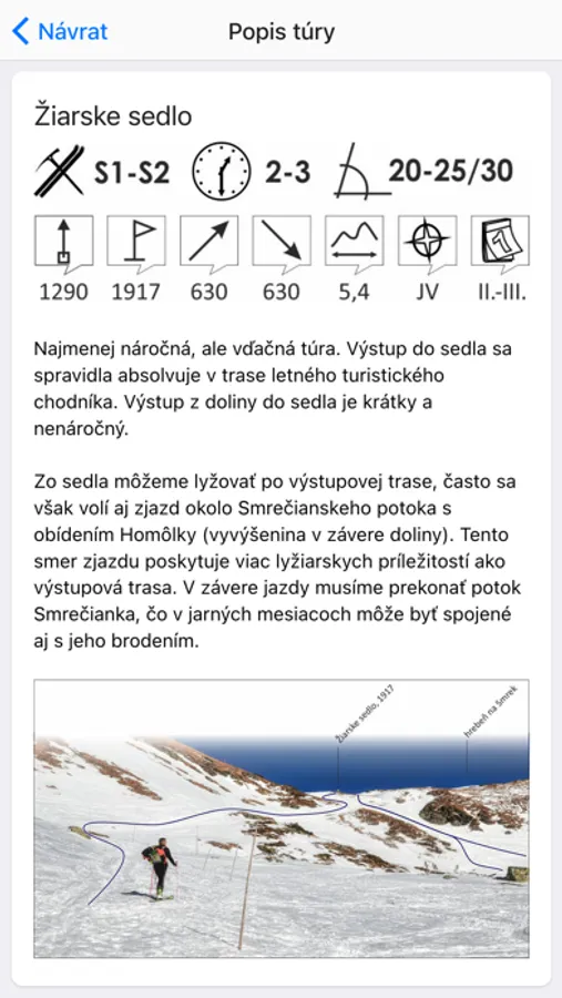 Aplikácia SKIALP TÚRY slúži ako pomôcka pri orientácii v teréne a ako výstraha pred možným uvoľnením lavíny.