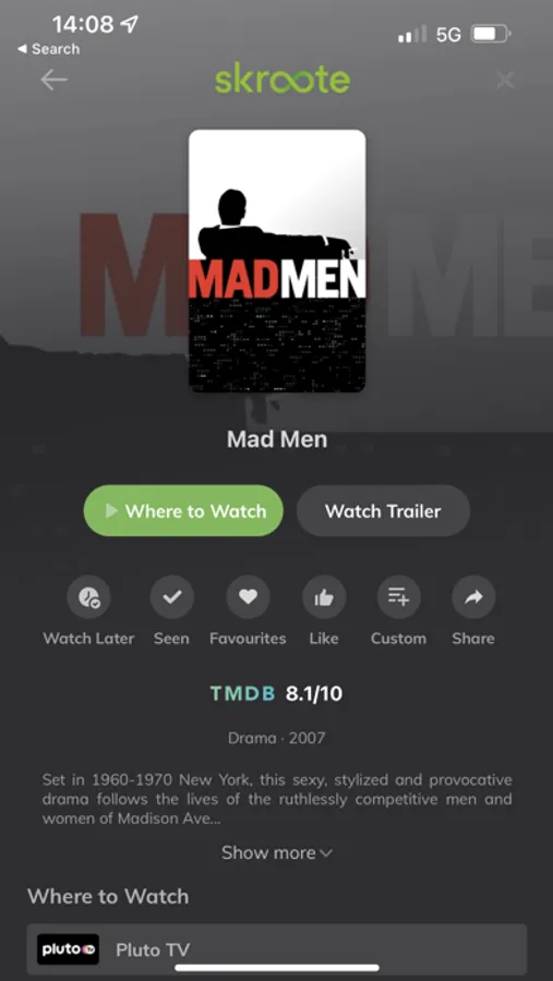 - Personalise your Skroote experience – tell it which streaming services you have, and it’ll personalise the results to tell you where you can watch what you’re looking for
