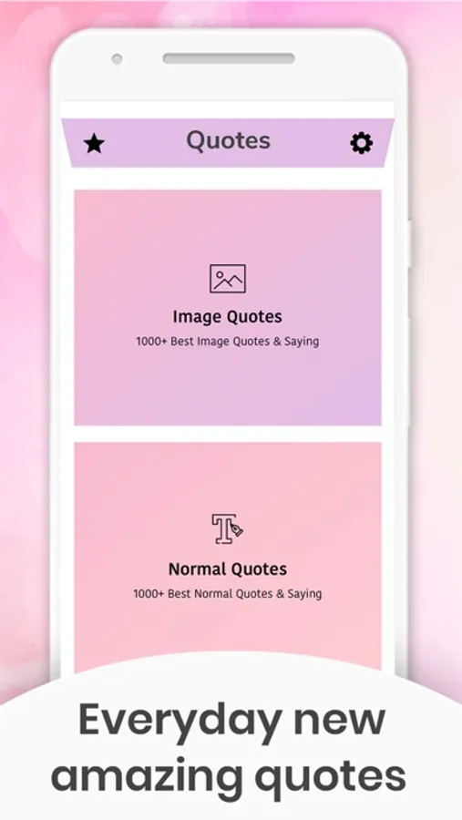 This App contains image quotes and normal quotes with 90+ categories. In image quotes every category contains 10+ images quotes and every normal categories contains
