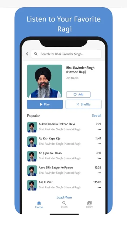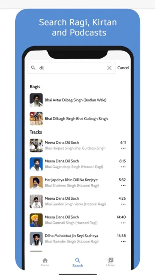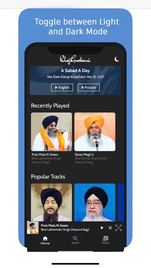 - Neatly organize a Library to see all liked and added kirtan, playlists and artists subscribed to