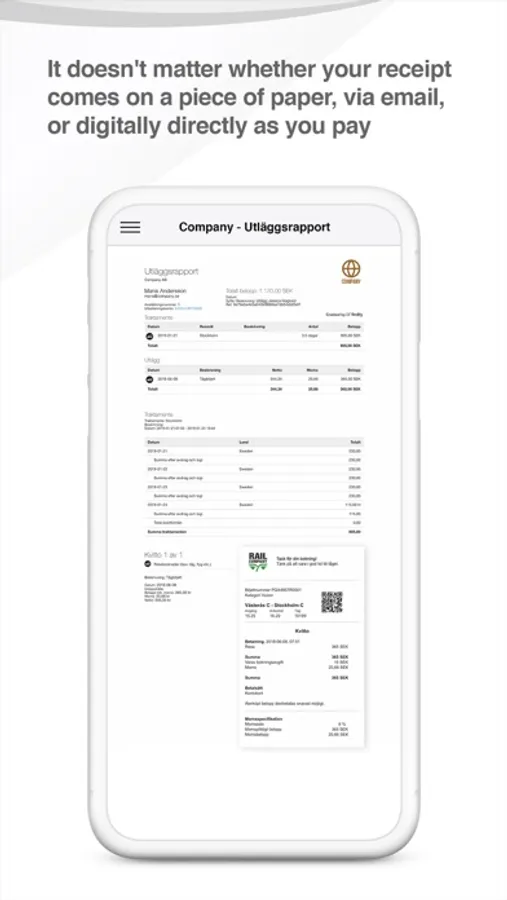 The app supports digital receipts sent out directly by the retail stores and outlets. Paper receipts are recorded by photographing directly into the app.
