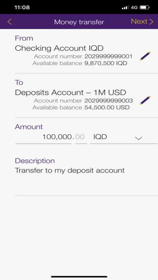 • Perform real-time transfers; make same- or cross-currency transfers between IQD and USD.