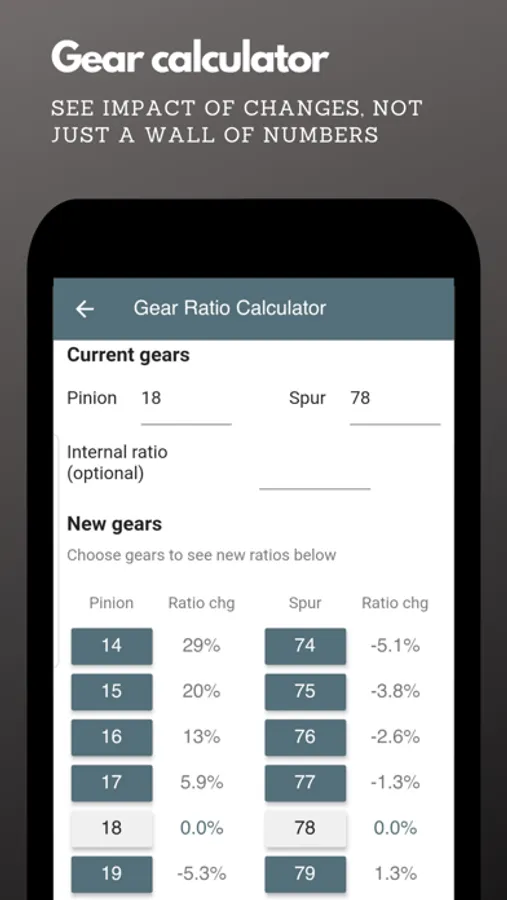 A handy gear ratio calculator and oil viscosity calculator (for temperature changes) are built right in!