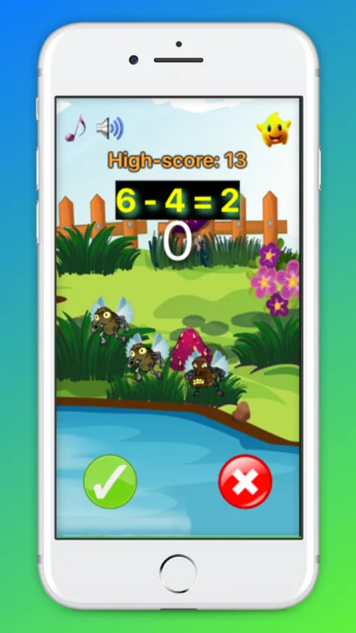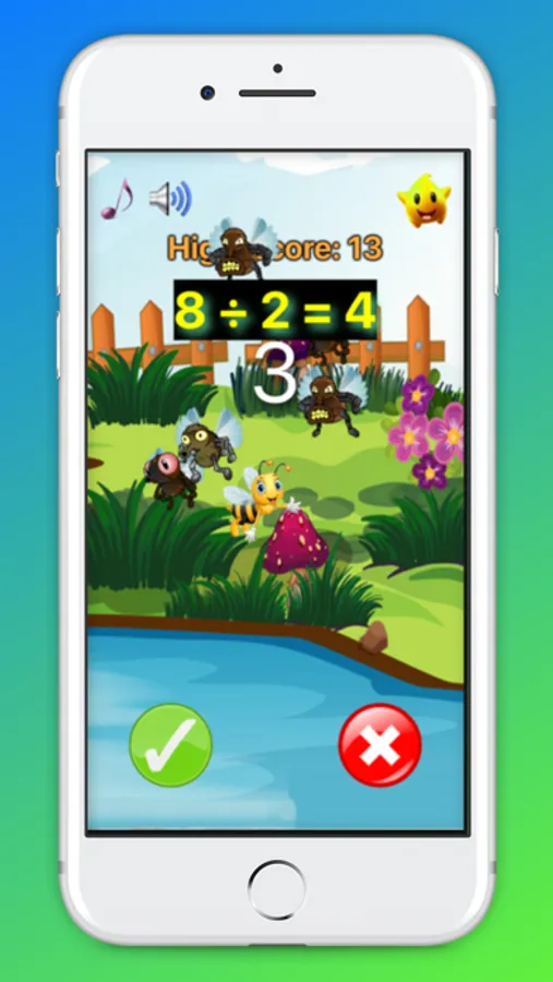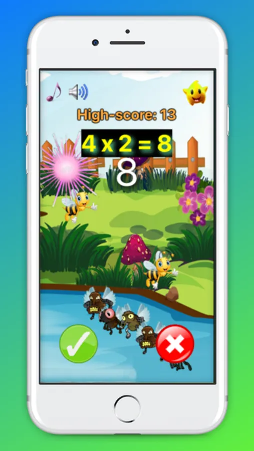 It's very easy to play game: Just tap on button True/False if your kid think that mathematical results is correct/incorrect. If kids tap correct button, a flying is killed, then a cute bee will appear.