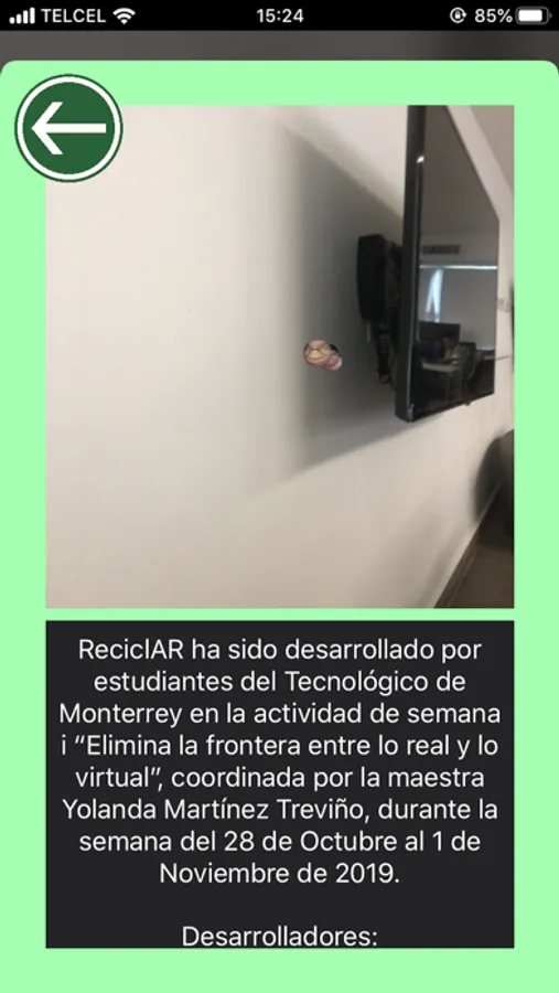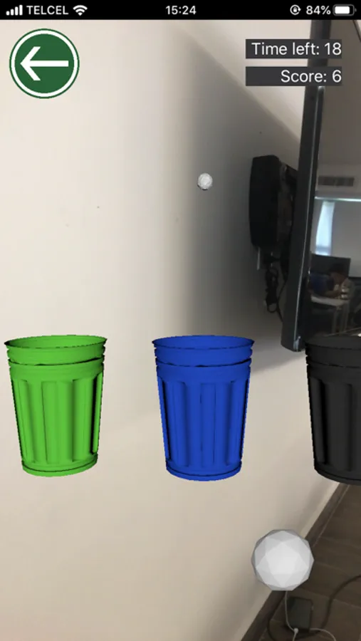 ReciclAR es una aplicación diseñada para fomentar el reciclaje y la separación de basura a sus respectivos recipientes, por medio de la realidad aumentada en dispositivos iOS se disparan como proyectiles latas, manzanas y bolitas de papel, cada una a diferentes botes en un lapso de 30 segundos; por cada vez que los proyectiles ingresen al bote indicado se suma un punto y por cada vez que los proyectiles ingresen en el bote incorrecto se resta un punto; al acabar el tiempo se muestra la puntuación final del usuario.