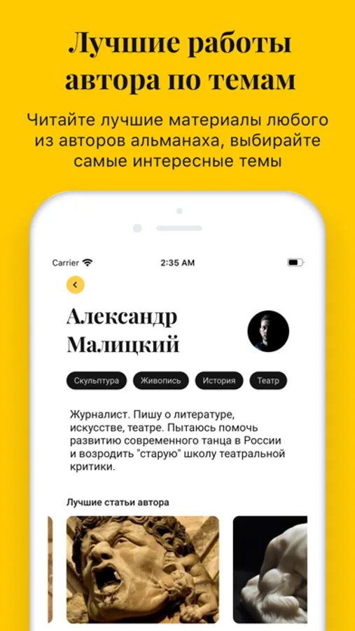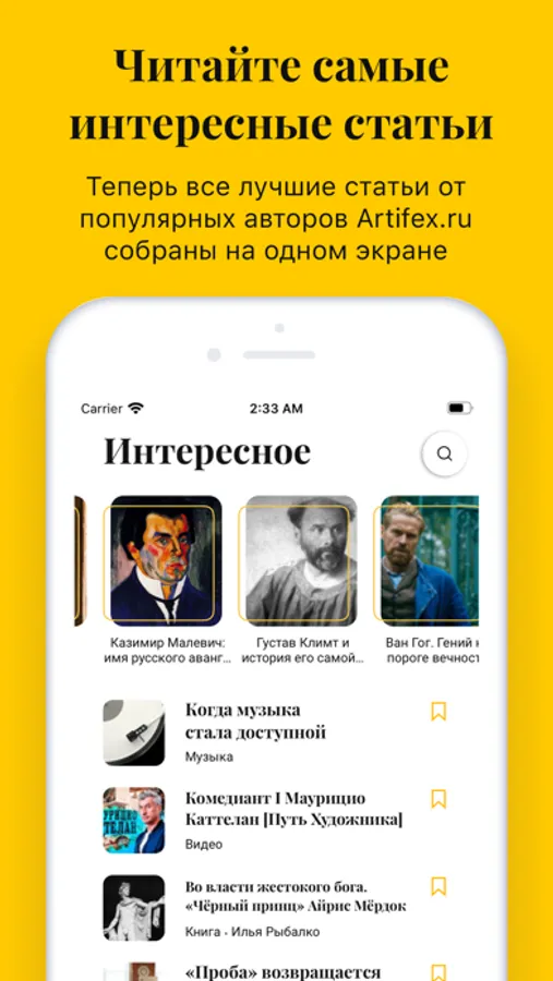 Во-первых, это удобно. Больше не нужно искать информацию о любимых художниках или исполнителях по всему интернету. Все, что нужно знать о знаковых творцах современности и истории, собрано на экране твоего смартфона.