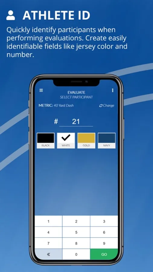PARTICIPANT IDENTIFICATION: Quickly identify participants when performing evaluations. Create easily identifiable fields like jersey color and number.