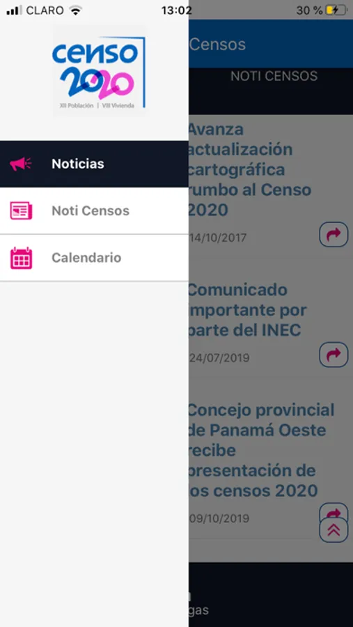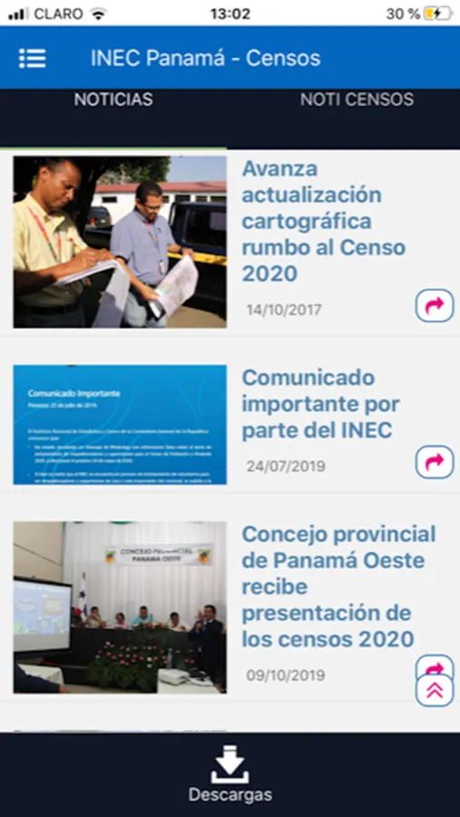 • Noticias y Tweets de los Censos Nacionales, con la facilidad de que el usuario puede compartir en sus redes sociales la noticia de su interés.