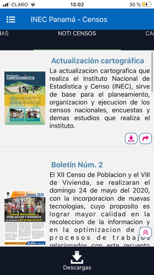 • Noticensos, para descargar boletines de avances de las actividades censales, en formato pdf.