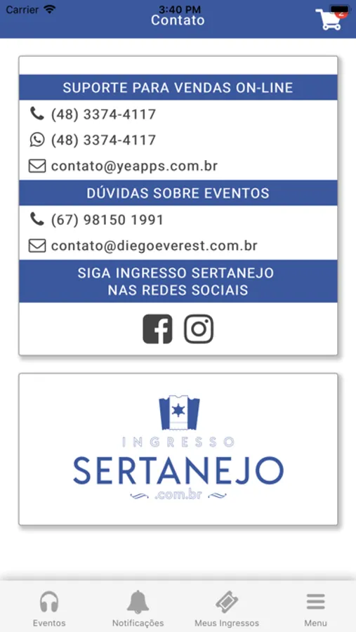 A Ingresso Sertanejo é a 1ª solução de Vendas de Ingressos Online Exclusiva para Eventos Sertanejo do Brasil, Com Um conceito inovador conseguimos simplificar o relacionamento do Produtor de Eventos com o Seu Cliente via notificação de Push, E-mail Marketing com total controle das Vendas e total segurança dos usuários. Contamos com uma plataforma de vendas extremamente segura e eficiente garantindo uma gestão de Ingressos Perfeita Para Qualquer que Seja o Tamanho do Seu Evento.