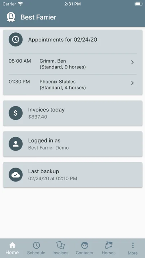 Best Farrier is a scheduling and invoicing app for farriers, built for mobile devices, that helps you run your business efficiently on the go. All your business information is in one place, easily and conveniently accessible wherever you are.