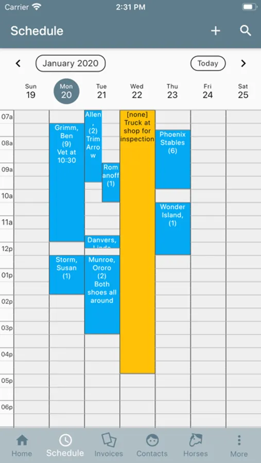 - Keep a detailed horse history timeline, auto-generated from your invoices. You can also add your own notes and pictures to the horse history.
