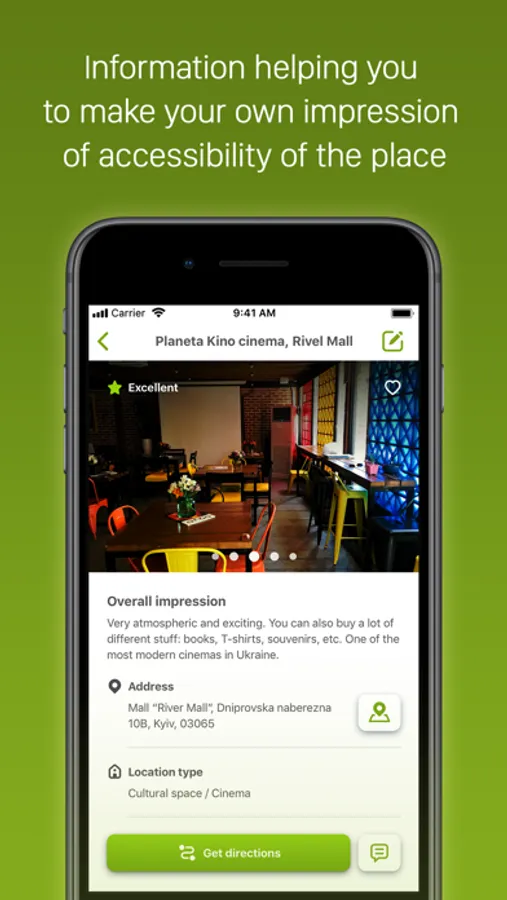 Dostupno app helps you to navigate Ukrainian cities and find barrier-free locations for you, your family and friends. Now you can quickly find a disability- kid- stroller- friendly places and locations convenient for other low-mobility groups.