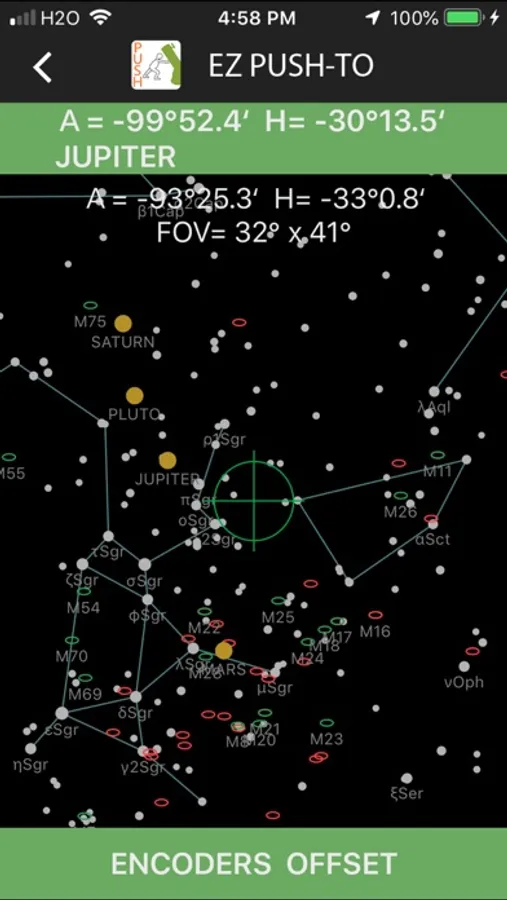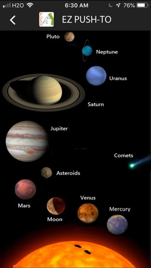 EZ PUSH TO is a sky map app running precisely when the Bluetooth encoders on GSO Dobsonian is connected. Without encoders, the app still works relying on iPhone's compass and gravity sensor.