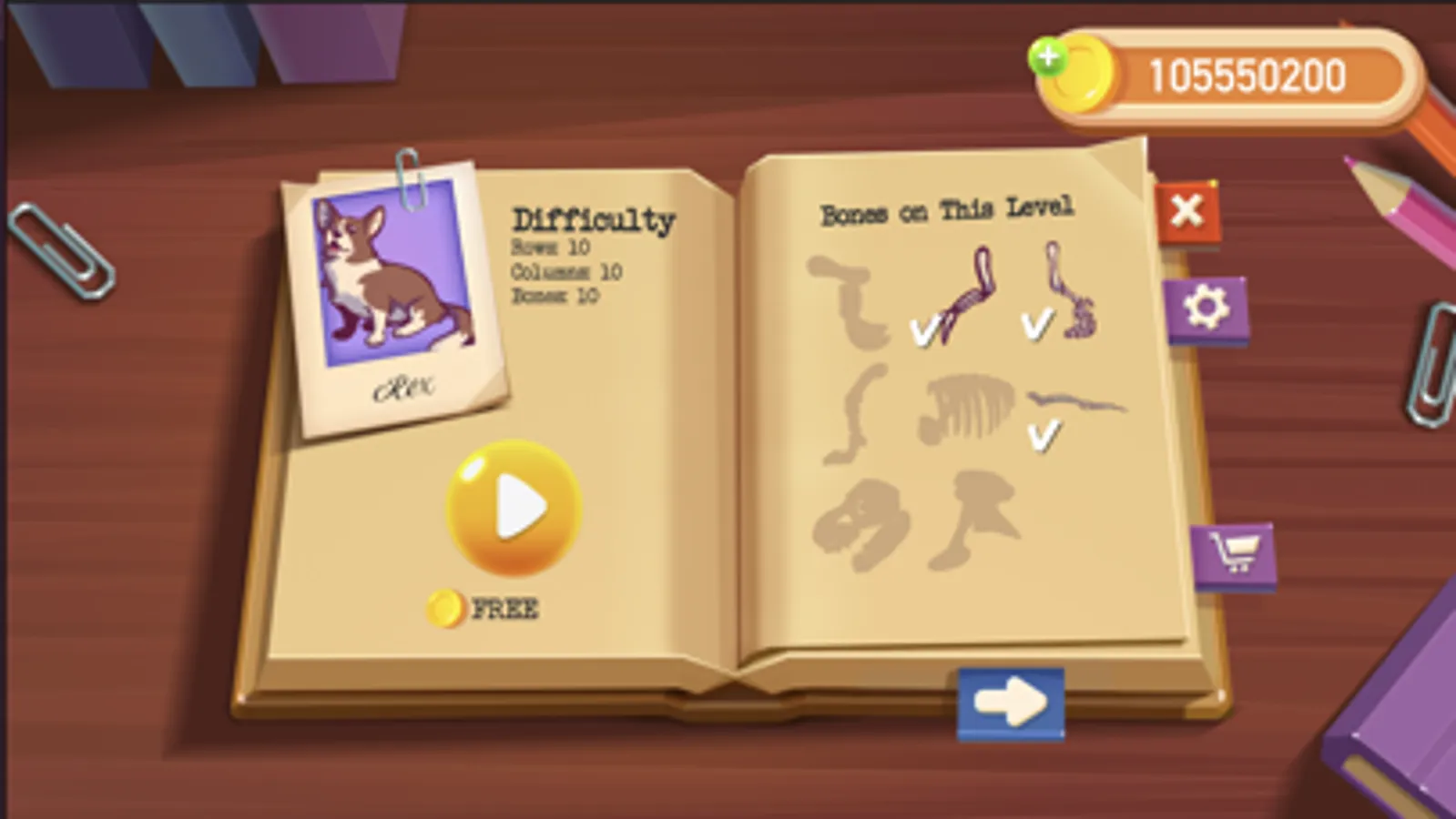 - Explore various dig sites and and solve puzzles collect bones from multiple types of dinosaurs.