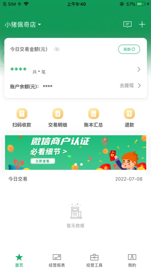 1.便捷收款:支持商户主扫、被扫收款功能,实时展示交易流水。