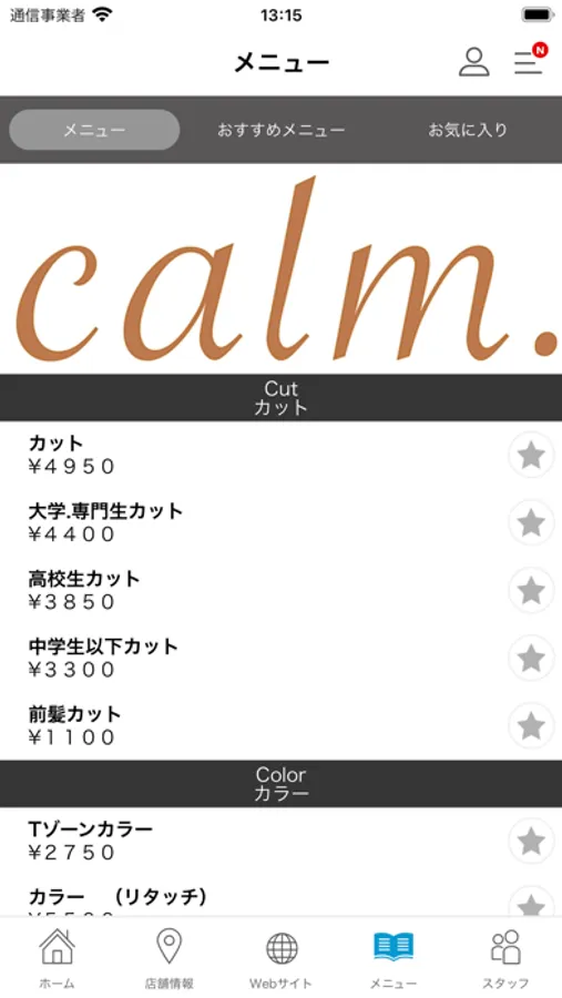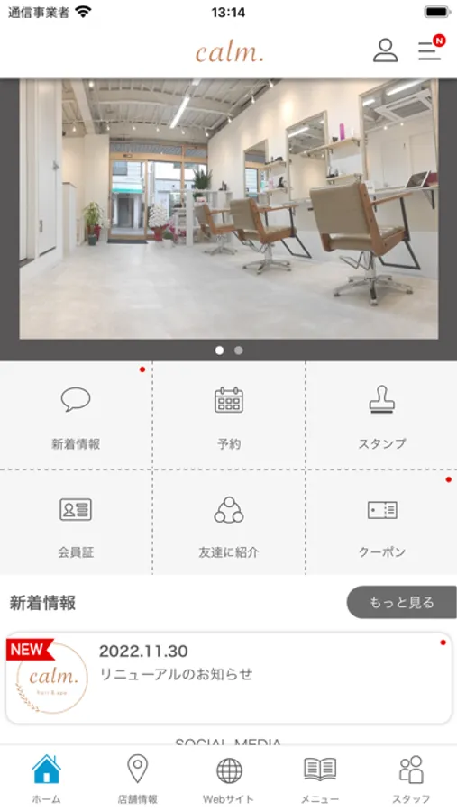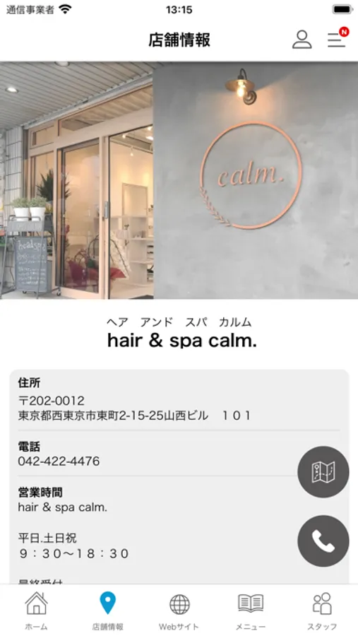 西武池袋線、保谷駅の美容室。hair&spa calm.のサロンアプリです。