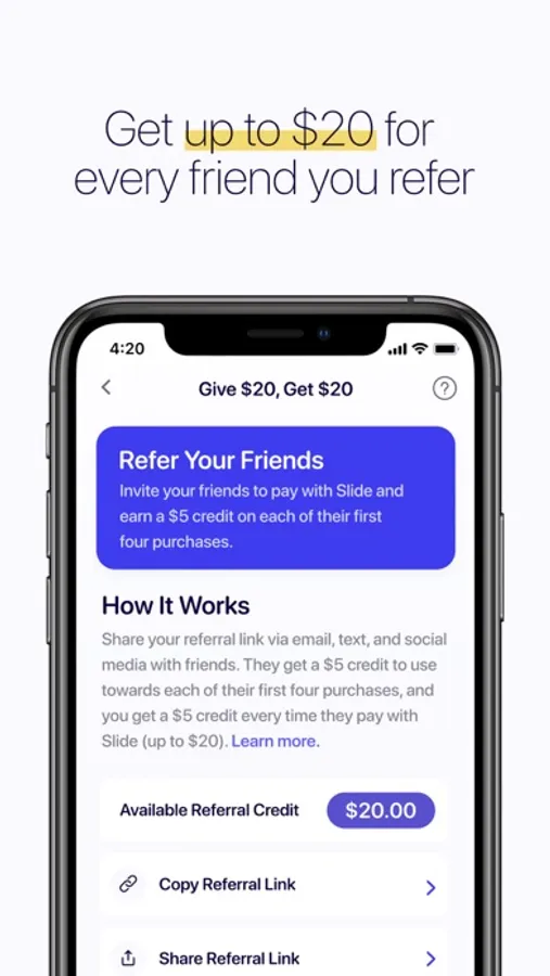 - Apply cash back towards your next transaction from Slide instantly