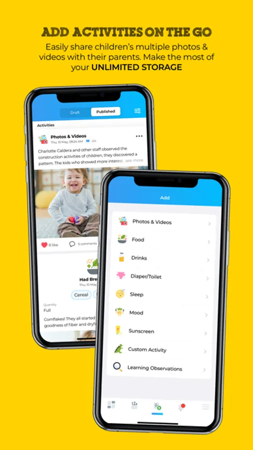 Our app comes pre-loaded with your learning framework so that you can add your curriculum and map it instantly. The childcare app works with Montessori preschools too!