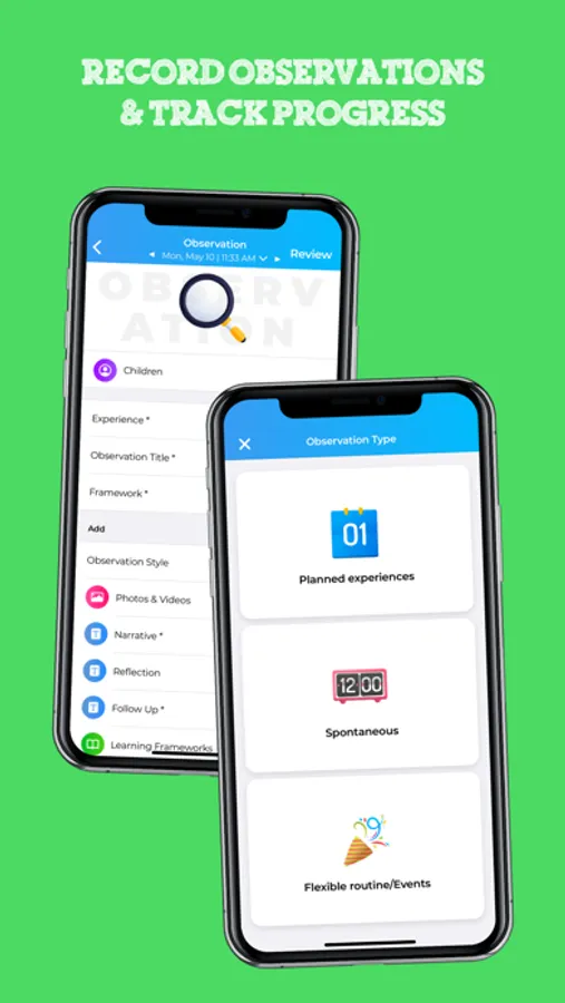 Daily routine updates and portfolios full of pictures, videos and milestones are created automagically from your observations and shared with parents.