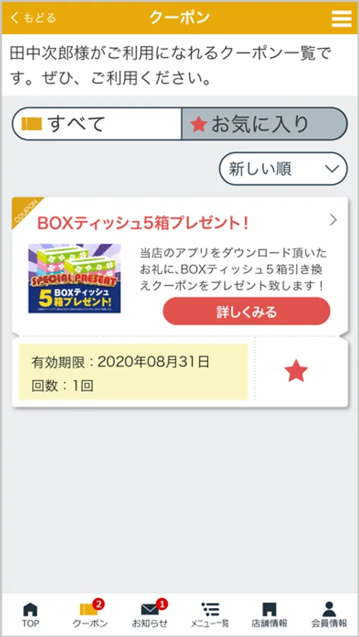 登録した店舗で実施中のキャンペーン情報や各種最新情報をお届けします。