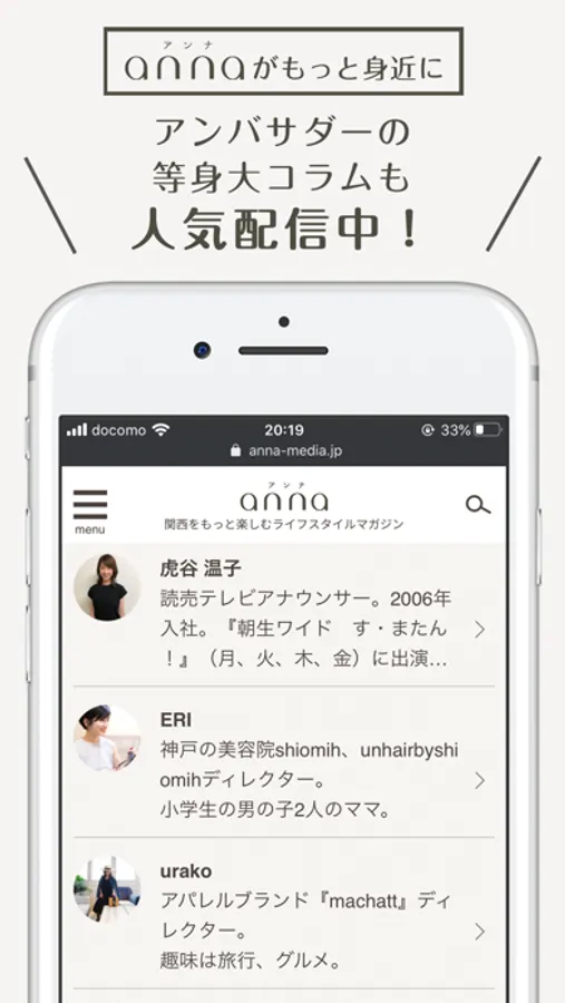 これまで、ウェブブラウザ上でご覧頂いていた「anna(アンナ)」ですが、アプリでもっと手軽に楽しむことができます。
