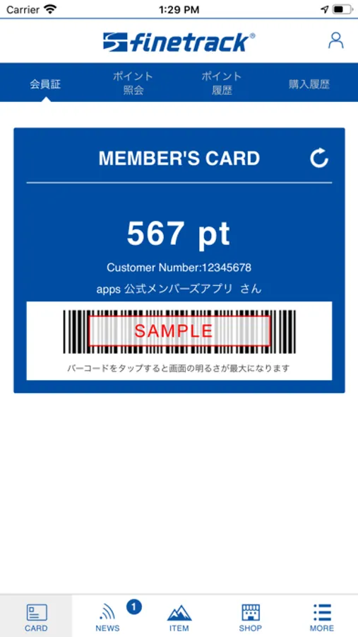 finetrack公式アプリは、対象店舗にて会員証としてご利用いただけるだけでなく、最新のお知らせや商品のお気に入り登録で、お買いものが便利にご利用いただけるアプリです。