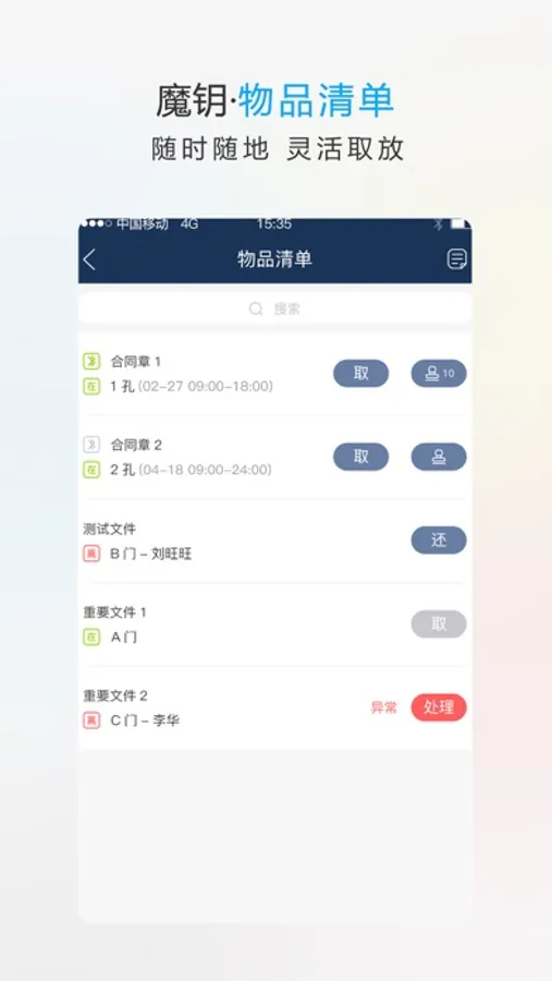 魔钥—智能物联共享柜采用自主研发技术,通过移动端进行远程遥控智能柜,实现一键申请,流程审批,实时记录物品借用、存储、异常状态,精准、高效、安全,全链条信息追溯。适合多种应用场景,满足企业公共物品管理需求,实现物品管理数据化、智能化。