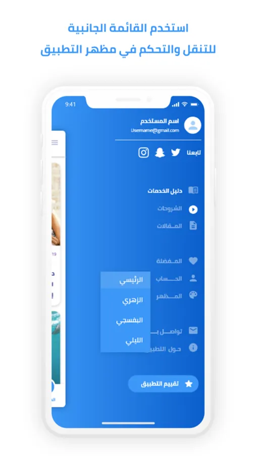 التطبيق يتوفر بعدة ألوان تتناسب مع جميع الأذواق، هي الأزرق، البنفسجي، الوردي والليلي.