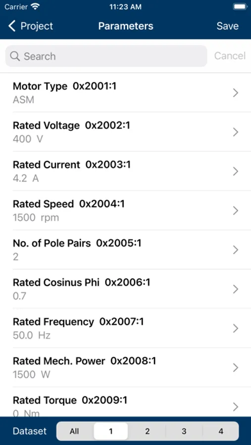 Once connected you can read the parameters (aka objects) from the Drive and change their value live. There is a dedicated page for faults and warnings to troubleshoot possible problems.
