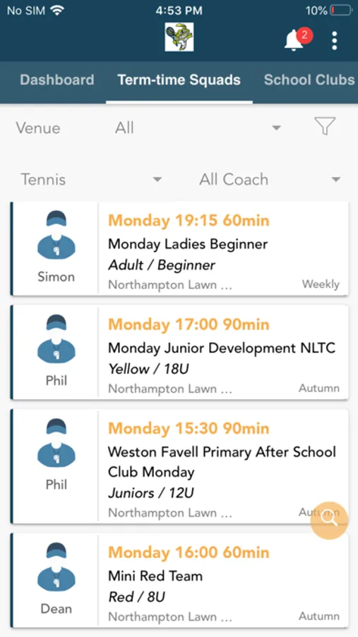 Our own branded app to facilitate booking on to our coaching programmes for 4 year olds to Adults of all levels - Schools, Club and Holiday programmes