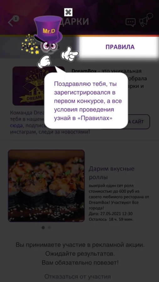 А так же мы проводим конкурсы от известных БРЕНДОВ, которые помимо подарка предоставляют скидки на свою продукцию для пользователей приложения.