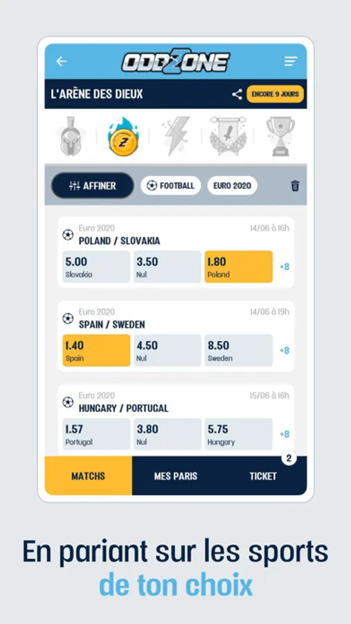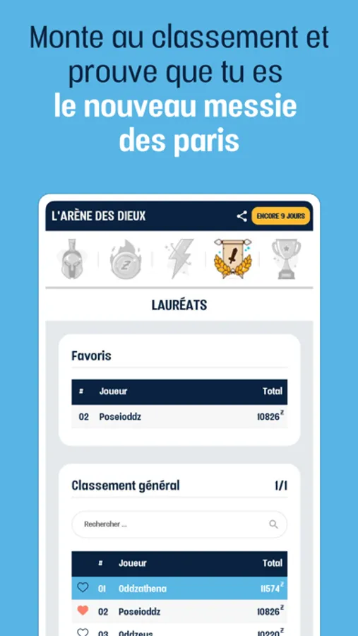 Le nouveau jeu gratuit de paris sportifs sous forme de tournois. Un format de jeu inédit pour parier sur les évènements sportifs et pour challenger ses amis.