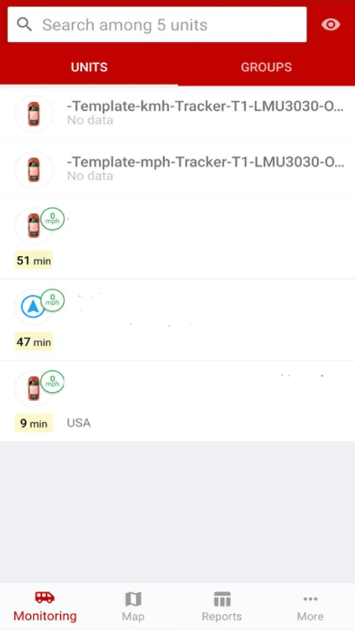 - Units list management. Get all the necessary information on movement and ignition state, data actuality, and unit location in real time.