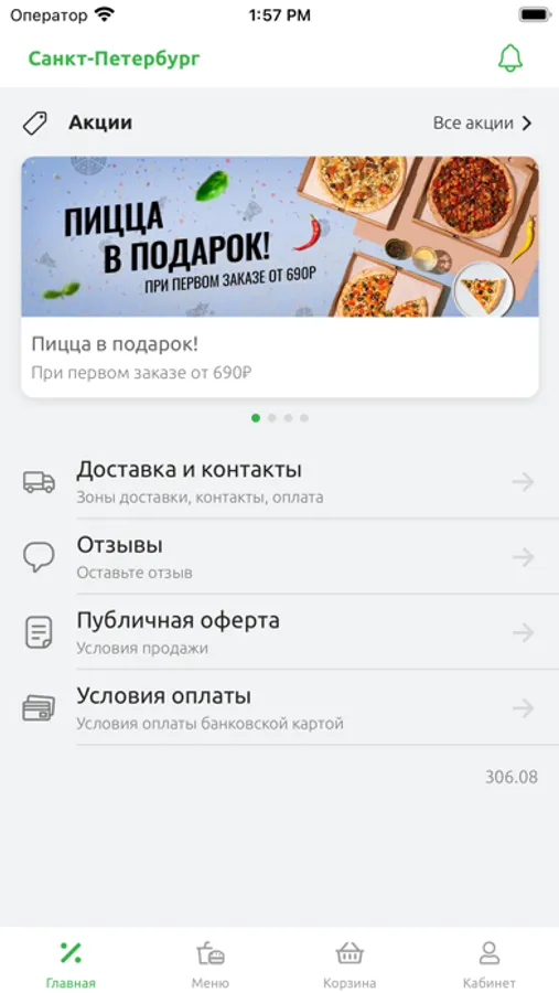 Действует система скидок для постоянных клиентов, а также горячие акции. Оплата: банковскими картами, наличными, через системы Google Pay/Apple Pay.