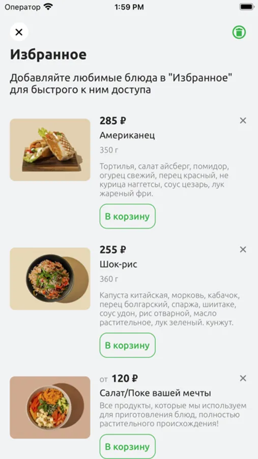 Удобный интерфейс приложения позволит получать веганские блюда с максимальной экономией времени. Установите его в смартфоне, чтобы оформлять доставку в следующих точках сети: