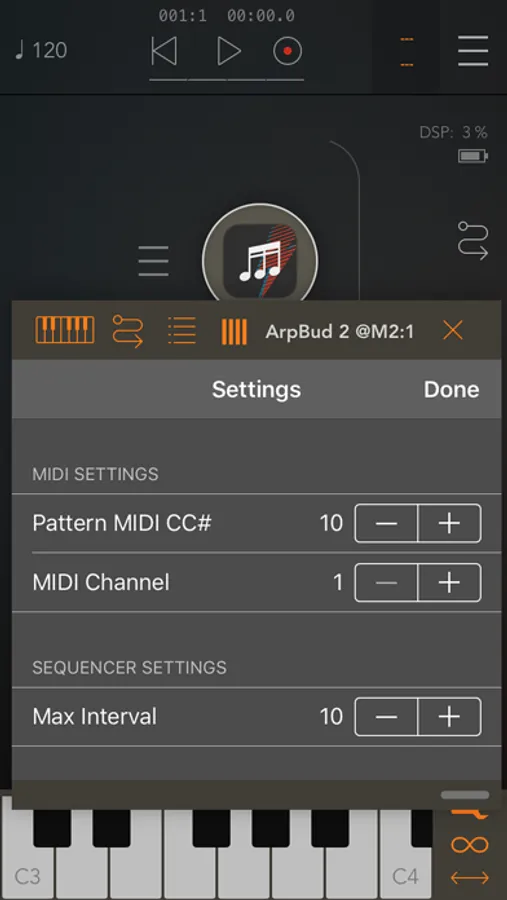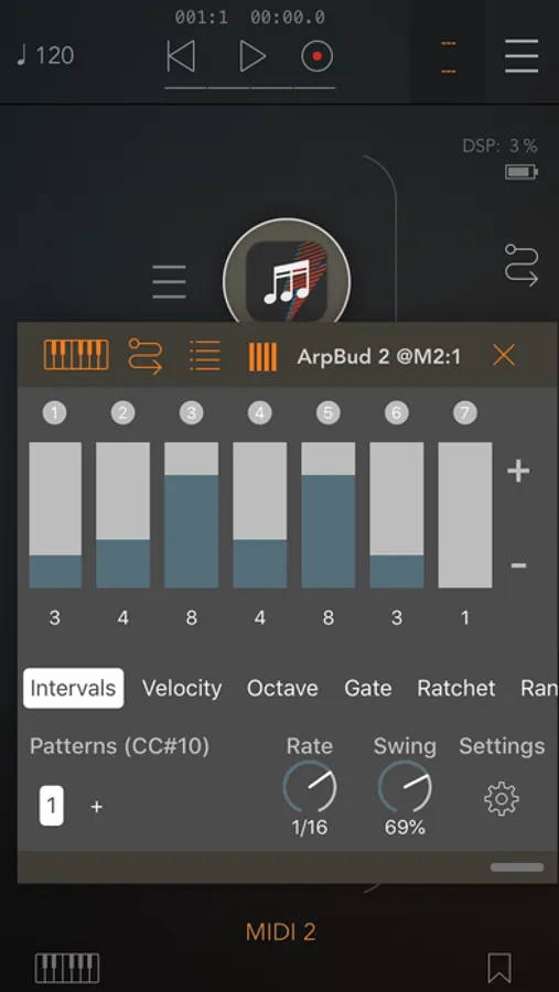 ArpBud 2 is a MIDI Arpeggiator app where you can create unique arp patterns and be able to arpeggiate your favorite software or hardware synthesizers.